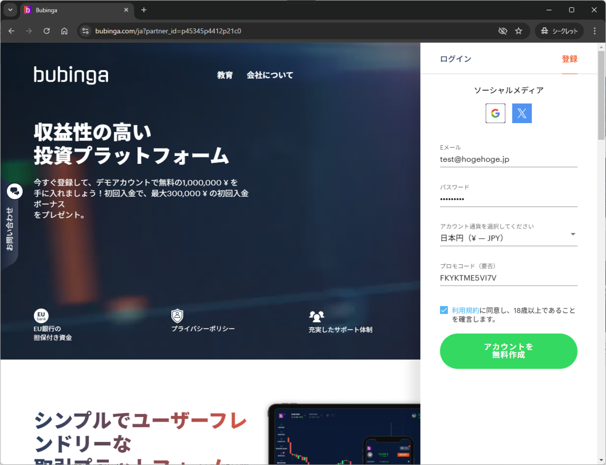 本記事筆者のボーナスコードの利用には、筆者のアフィリエイトリンクからの登録が必要です。