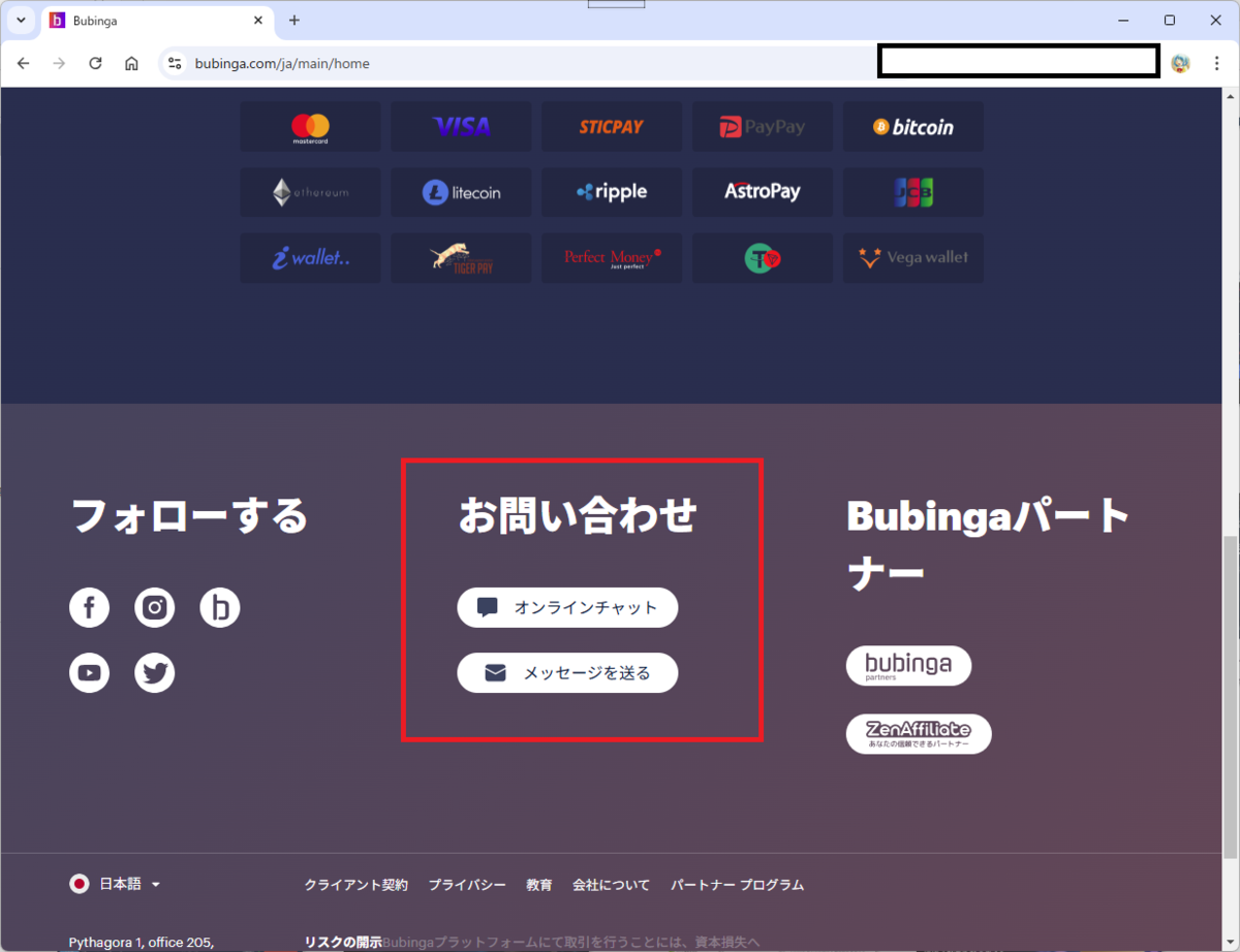 BubingaのWebページに対応している入出金方法の一部が画像として表示されています。
